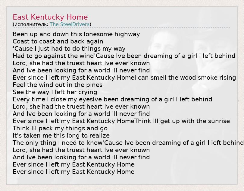 А как ты думаешь, о чем песня "East Kentucky Home" ?