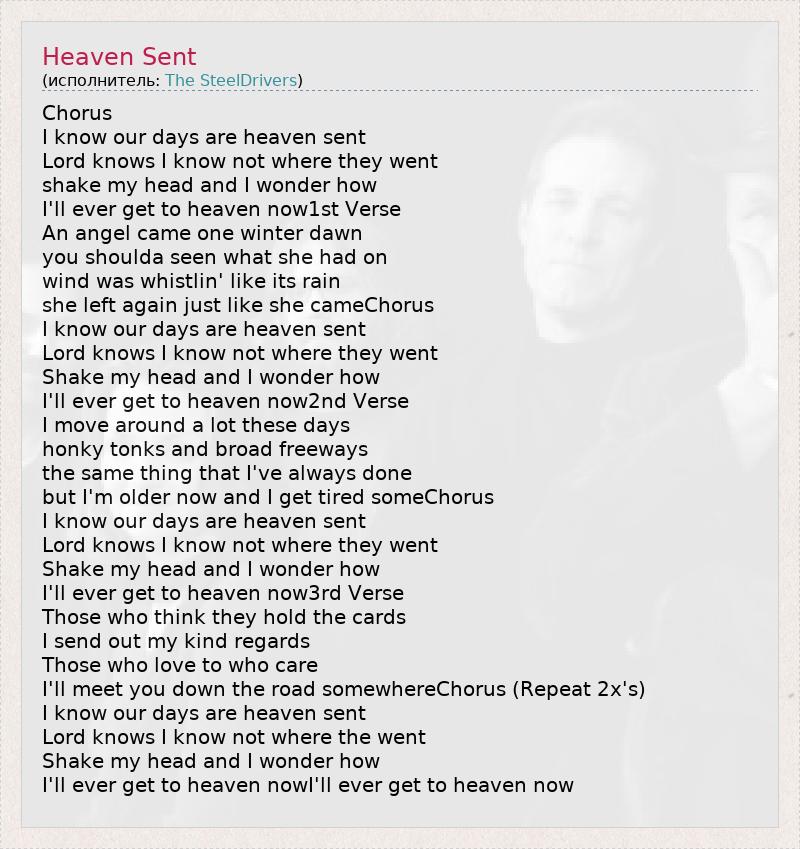 А как ты думаешь, о чем песня "Heaven Sent" ?