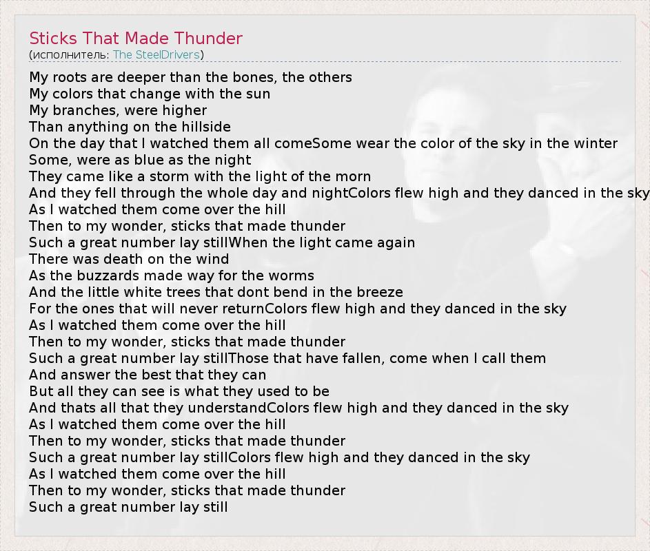 А как ты думаешь, о чем песня "Sticks That Made Thunder" ?