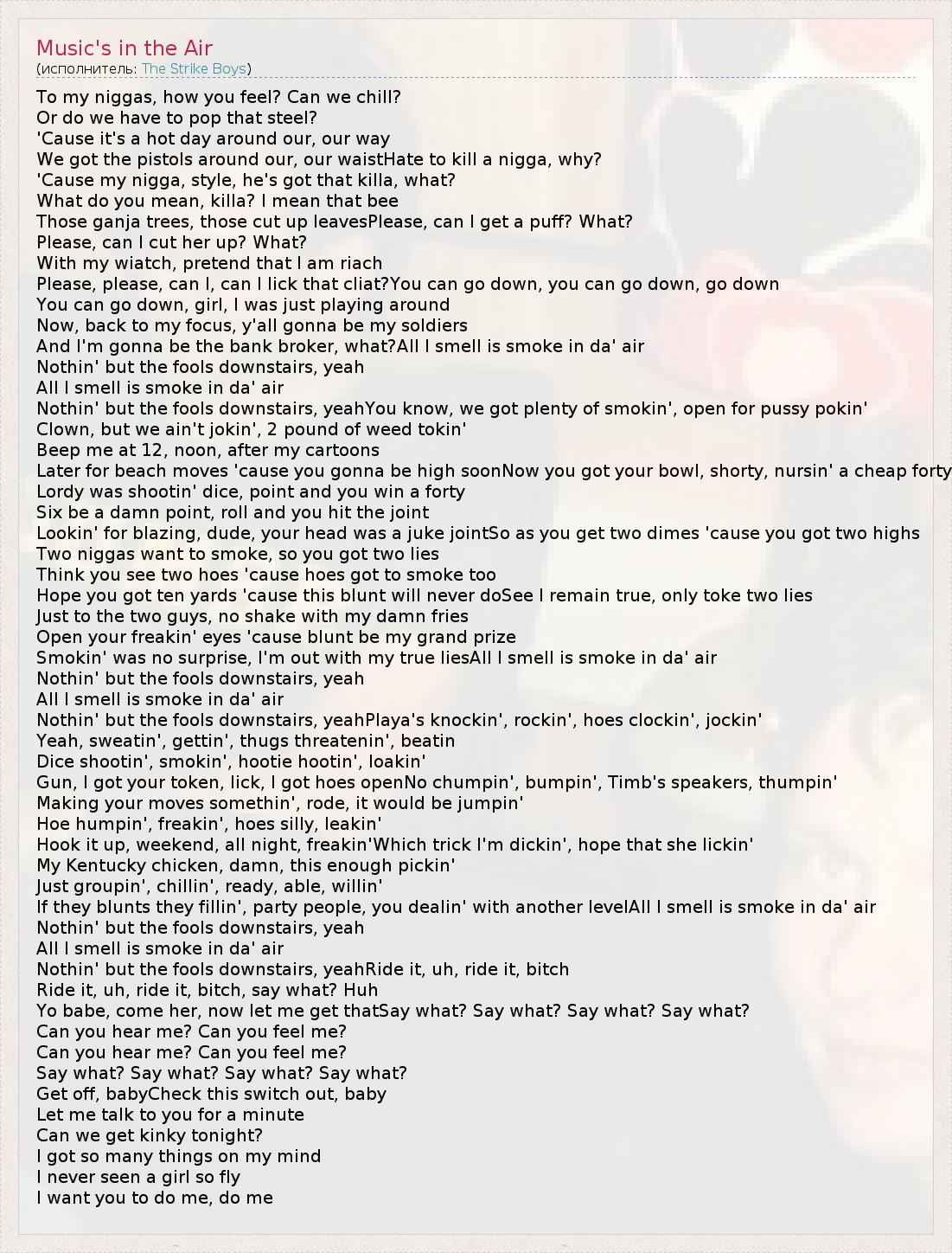 А как ты думаешь, о чем песня "Music's in the Air" ?