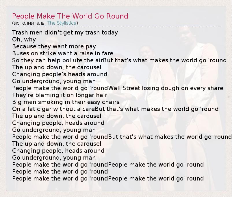 А как ты думаешь, о чем песня "People Make The World Go Round" ?