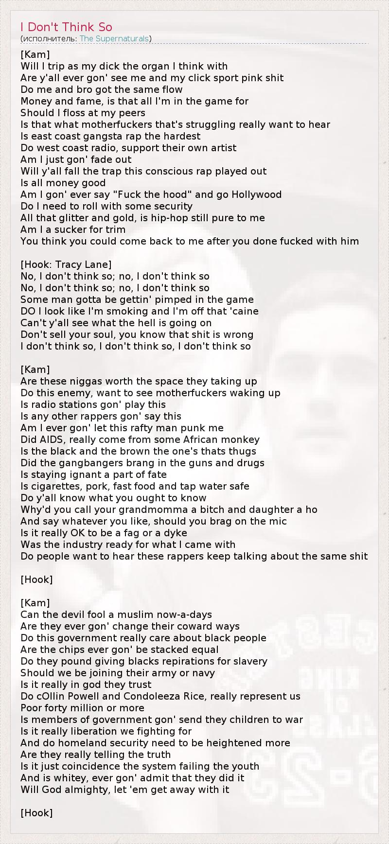 А как ты думаешь, о чем песня "I Don't Think So" ?