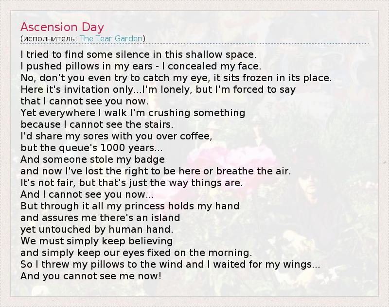 А как ты думаешь, о чем песня "Ascension Day" ?