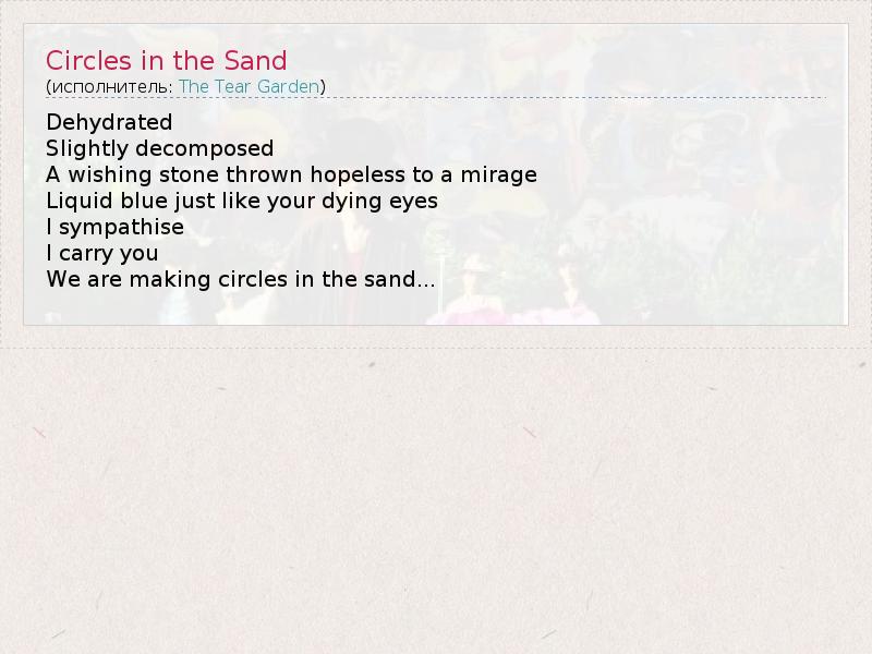 А как ты думаешь, о чем песня "Circles in the Sand" ?