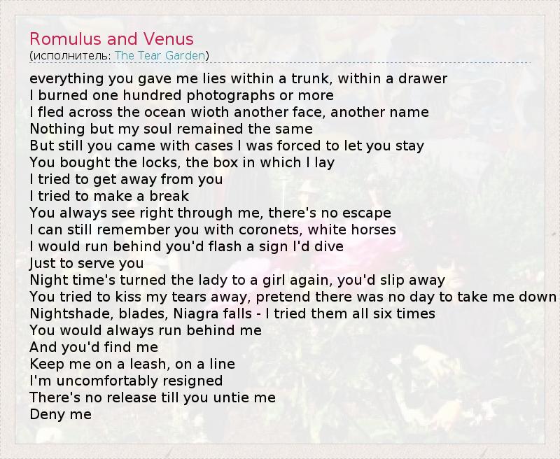 А как ты думаешь, о чем песня "Romulus and Venus" ?