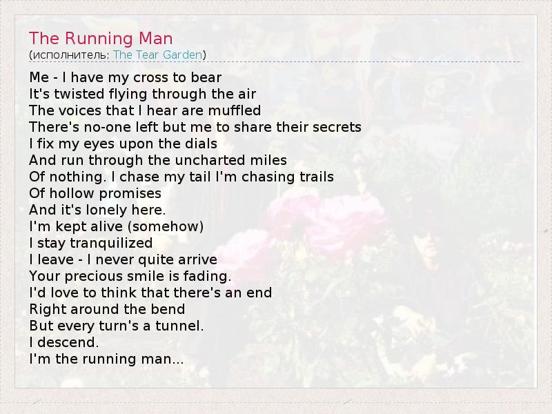 А как ты думаешь, о чем песня "The Running Man" ?