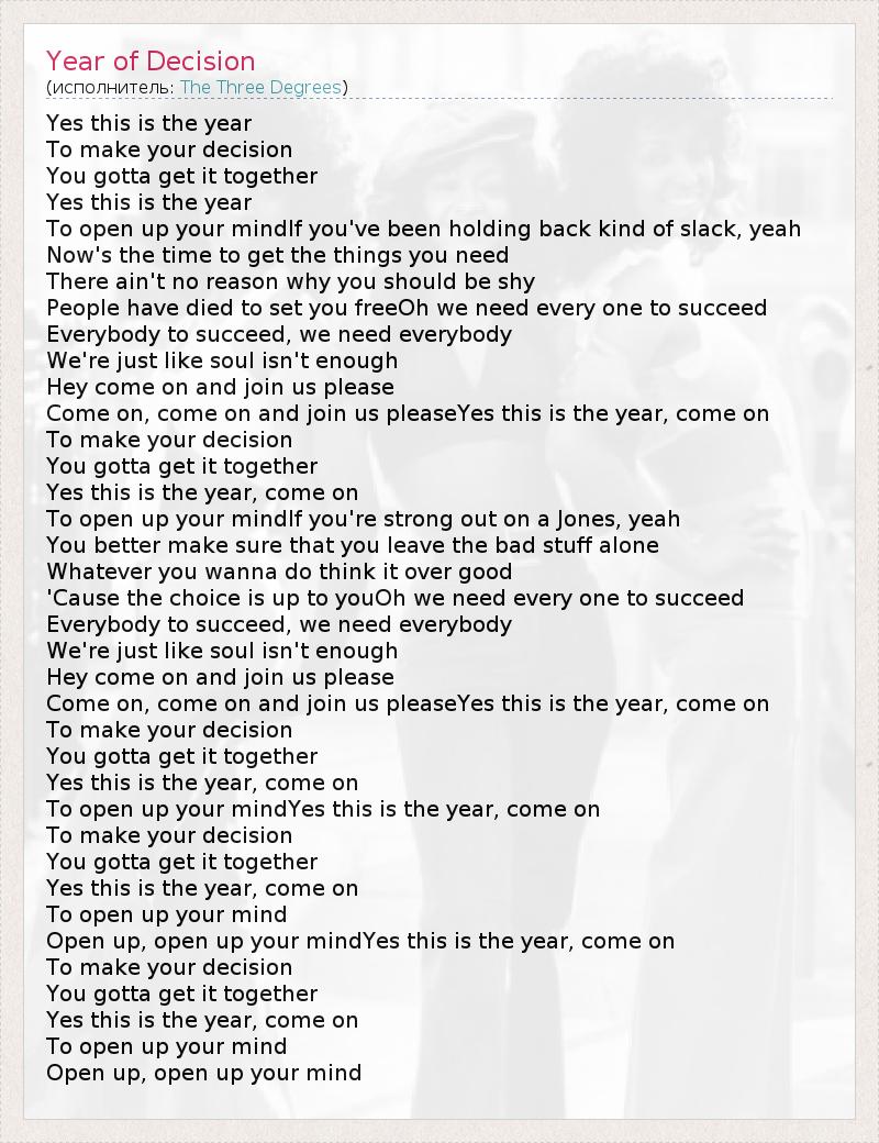 А как ты думаешь, о чем песня "Year of Decision" ?