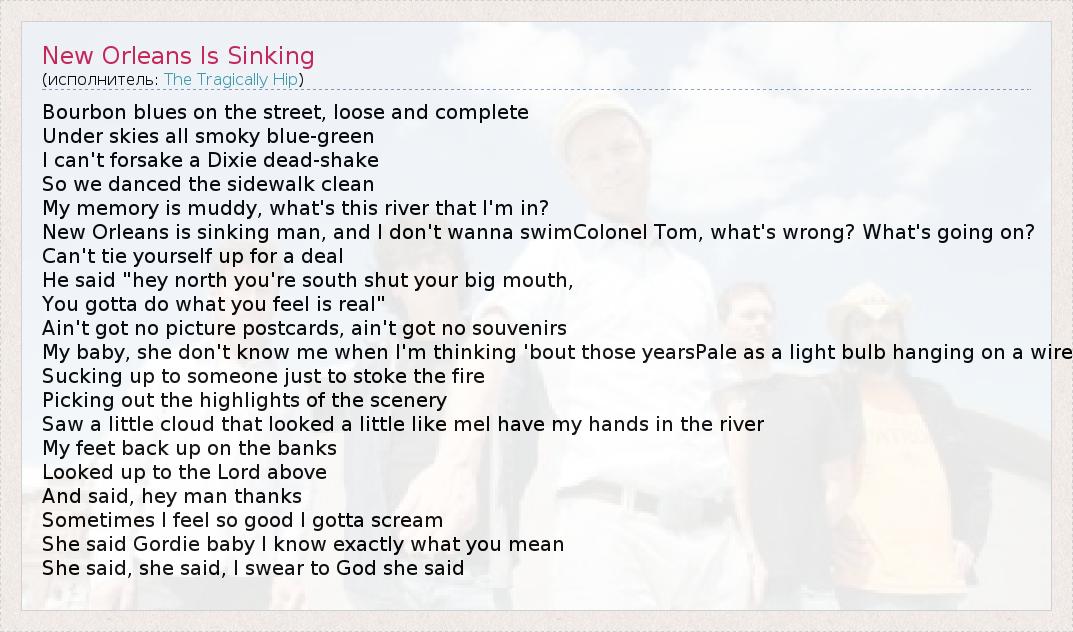 А как ты думаешь, о чем песня "New Orleans Is Sinking" ?
