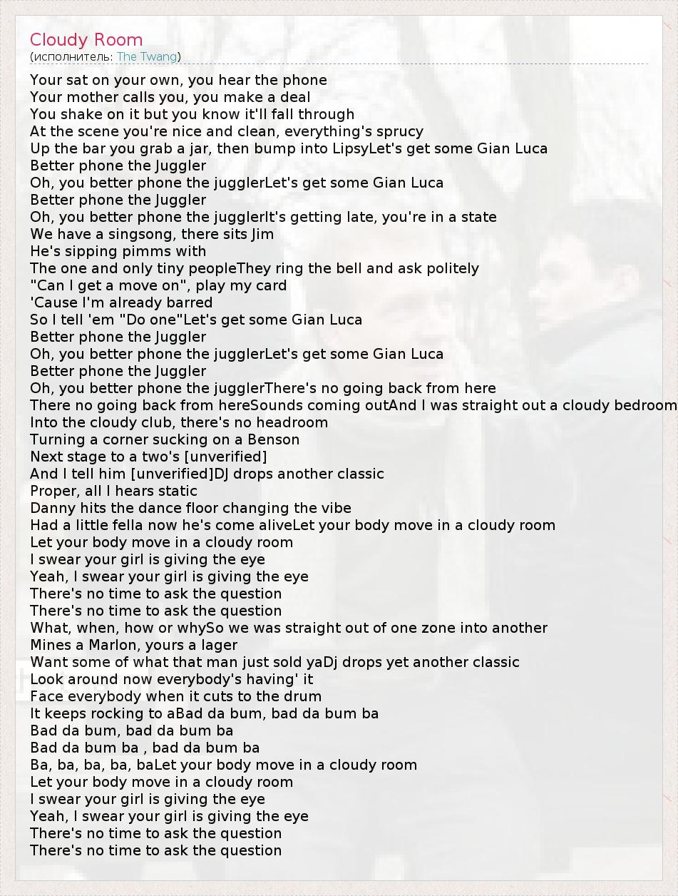 А как ты думаешь, о чем песня "Cloudy Room" ?