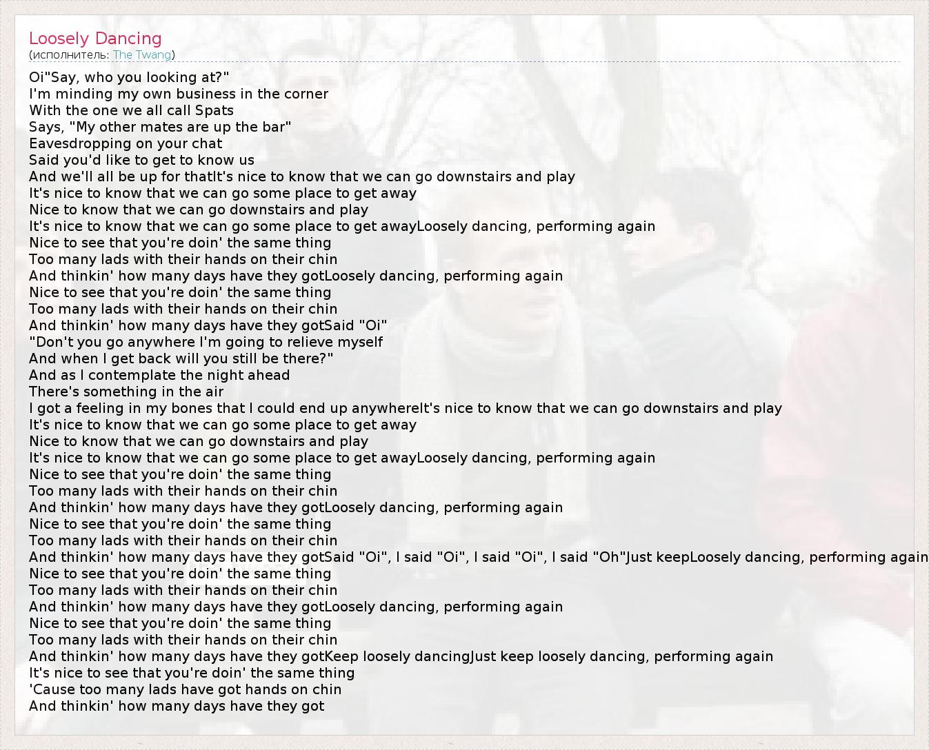 А как ты думаешь, о чем песня "Loosely Dancing" ?