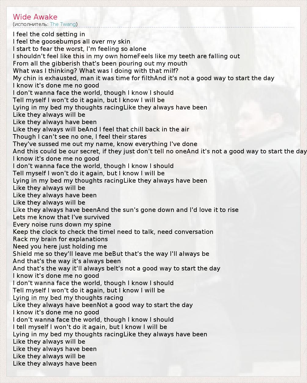 А как ты думаешь, о чем песня "Wide Awake" ?
