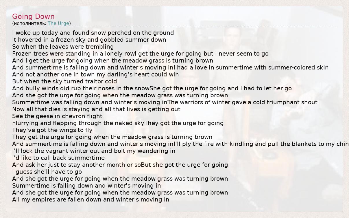 А как ты думаешь, о чем песня "Going Down" ?