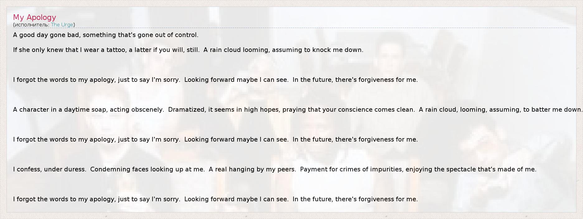 I forgot the words to my apology, just to say I'm sorry.  Looking forward maybe I can see.  In the future, there's forgiveness for me.