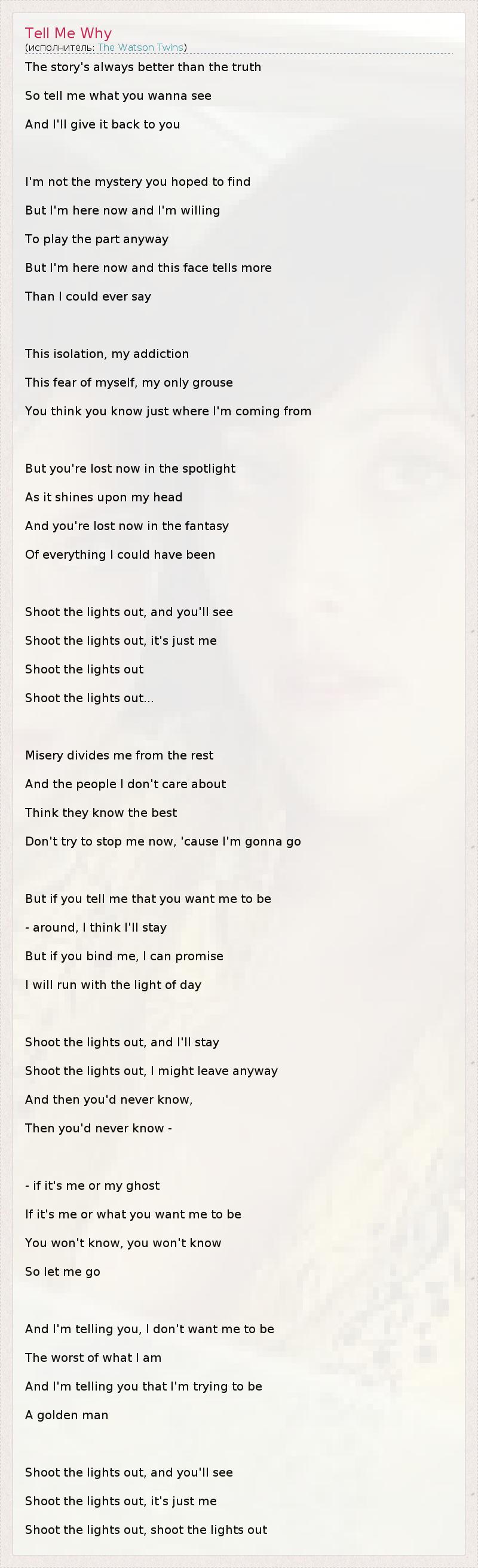 А как ты думаешь, о чем песня "Tell Me Why" ?