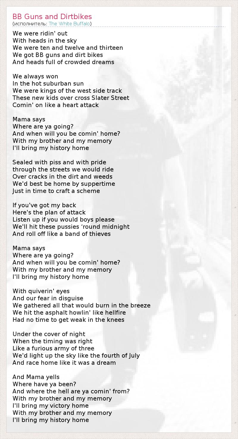 А как ты думаешь, о чем песня "BB Guns and Dirtbikes" ?