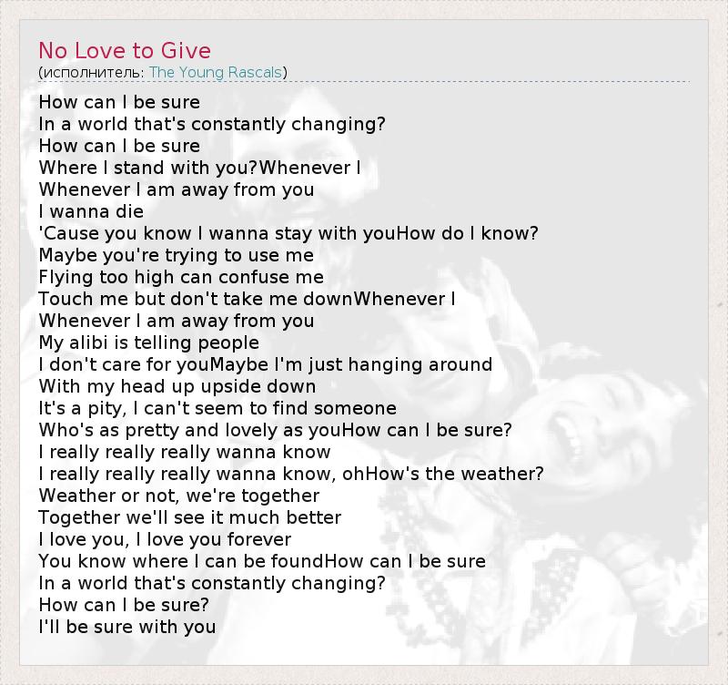 А как ты думаешь, о чем песня "No Love to Give" ?