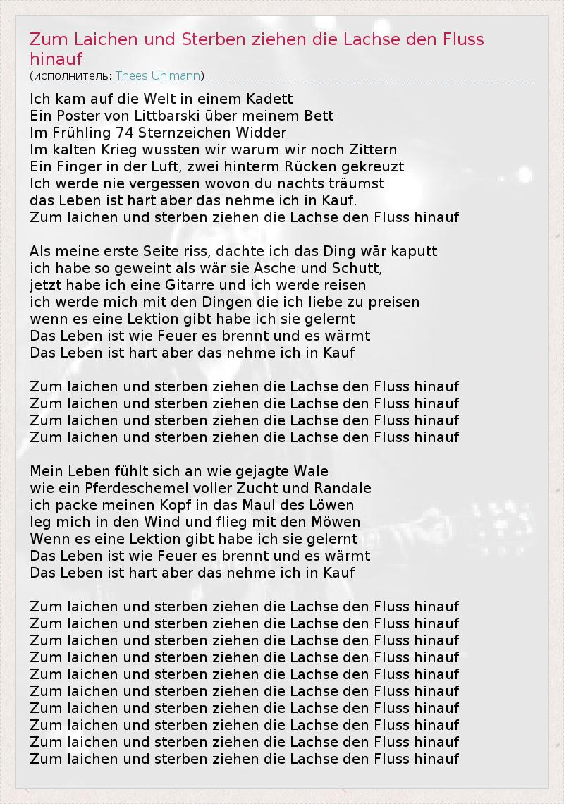 А как ты думаешь, о чем песня "Zum Laichen und Sterben ziehen die Lachse den Fluss hinauf" ?