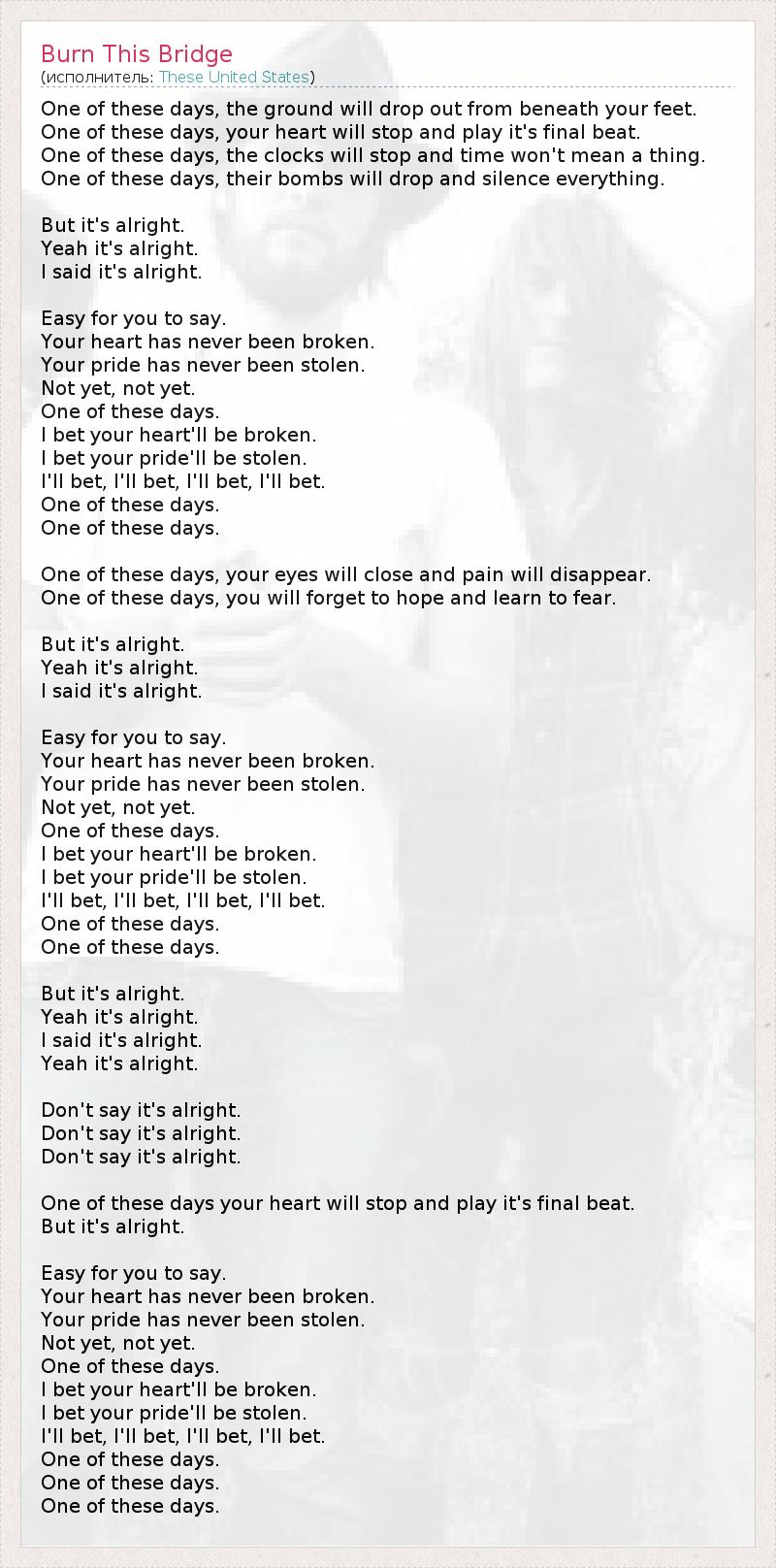 А как ты думаешь, о чем песня "Burn This Bridge" ?