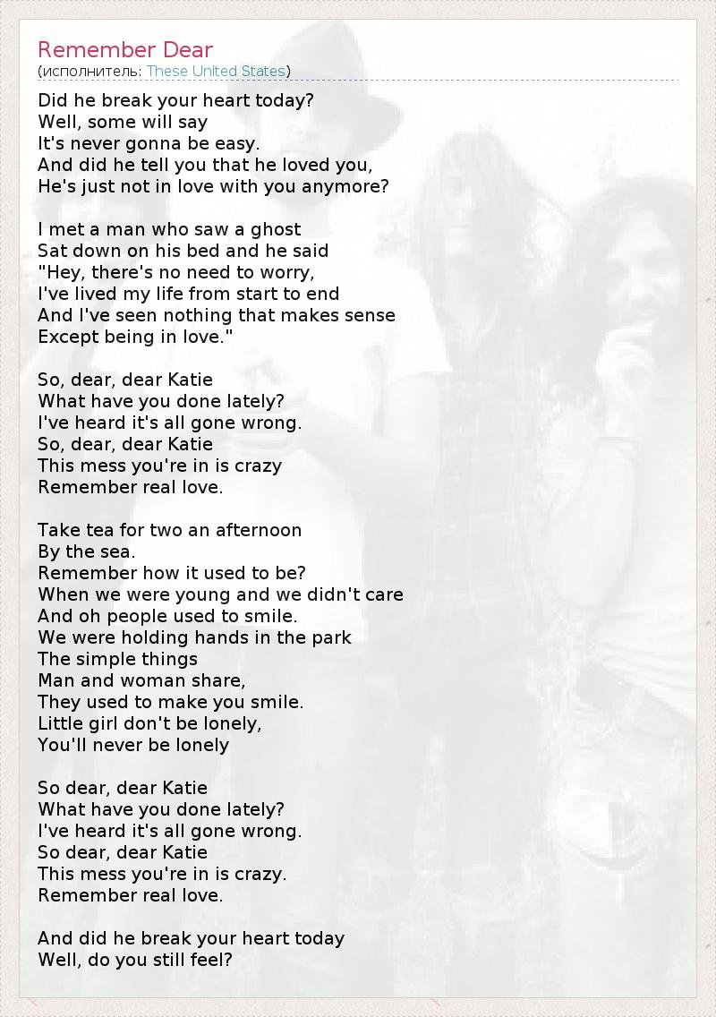 А как ты думаешь, о чем песня "Remember Dear" ?