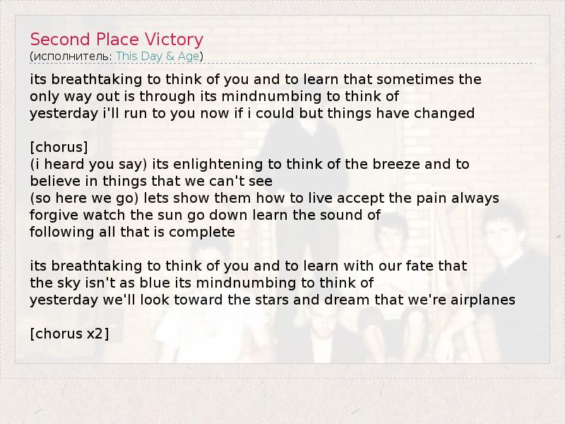 А как ты думаешь, о чем песня "Second Place Victory" ?