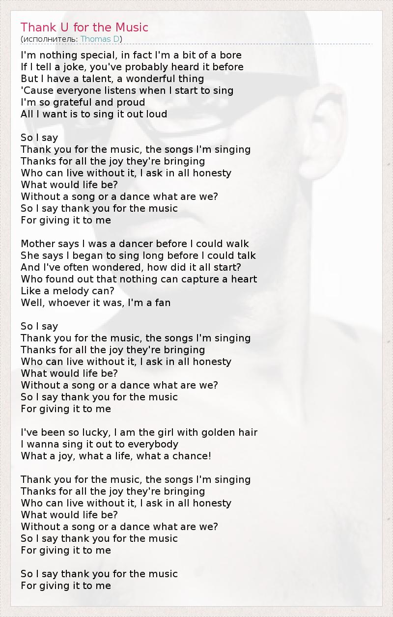 А как ты думаешь, о чем песня "Thank U for the Music" ?