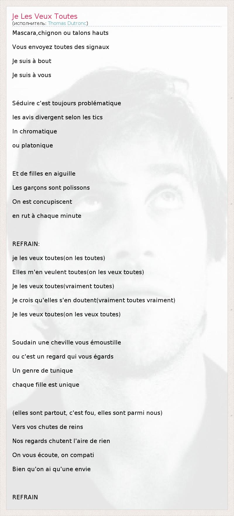 А как ты думаешь, о чем песня "Je Les Veux Toutes" ?