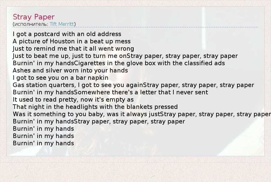 А как ты думаешь, о чем песня "Stray Paper" ?