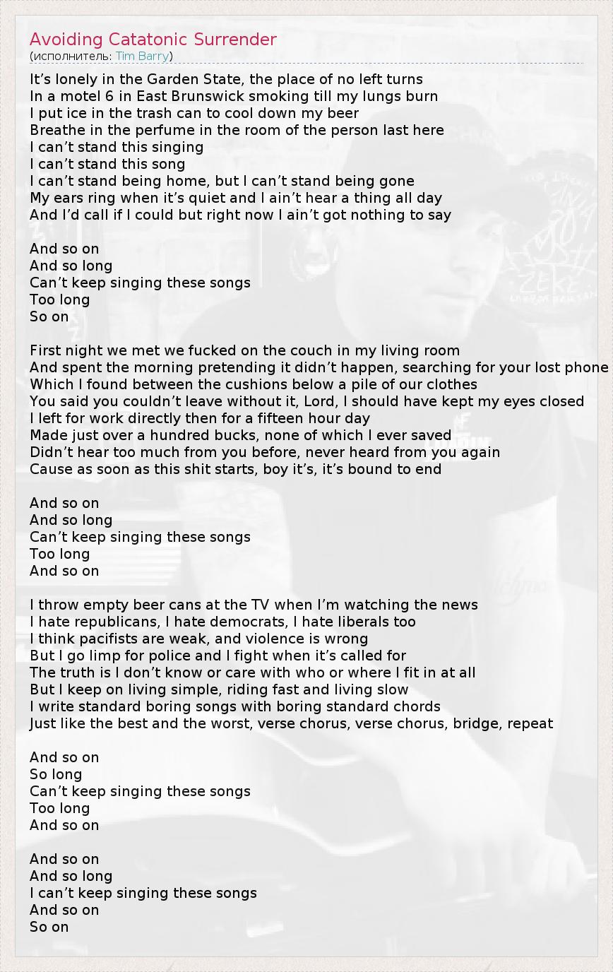 А как ты думаешь, о чем песня "Avoiding Catatonic Surrender" ?