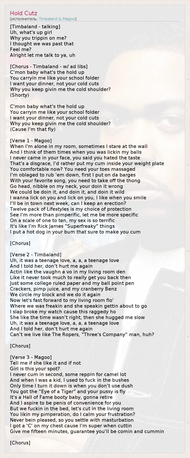 А как ты думаешь, о чем песня "Hold Cutz" ?