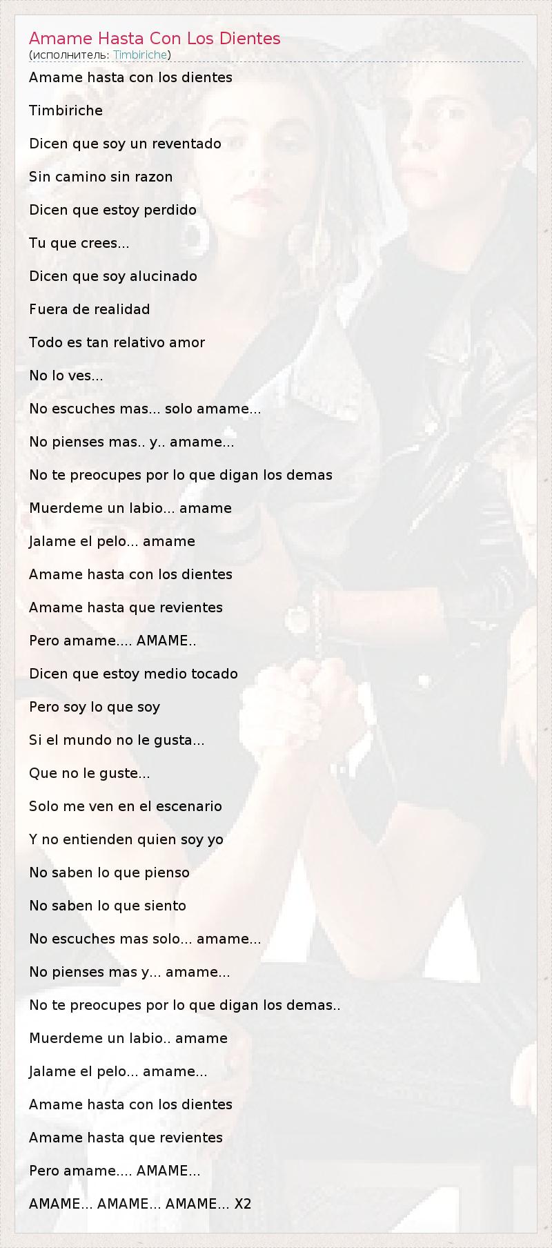 ГлавнаяИсполнителиTimbiricheAmame Hasta Con Los Dientes