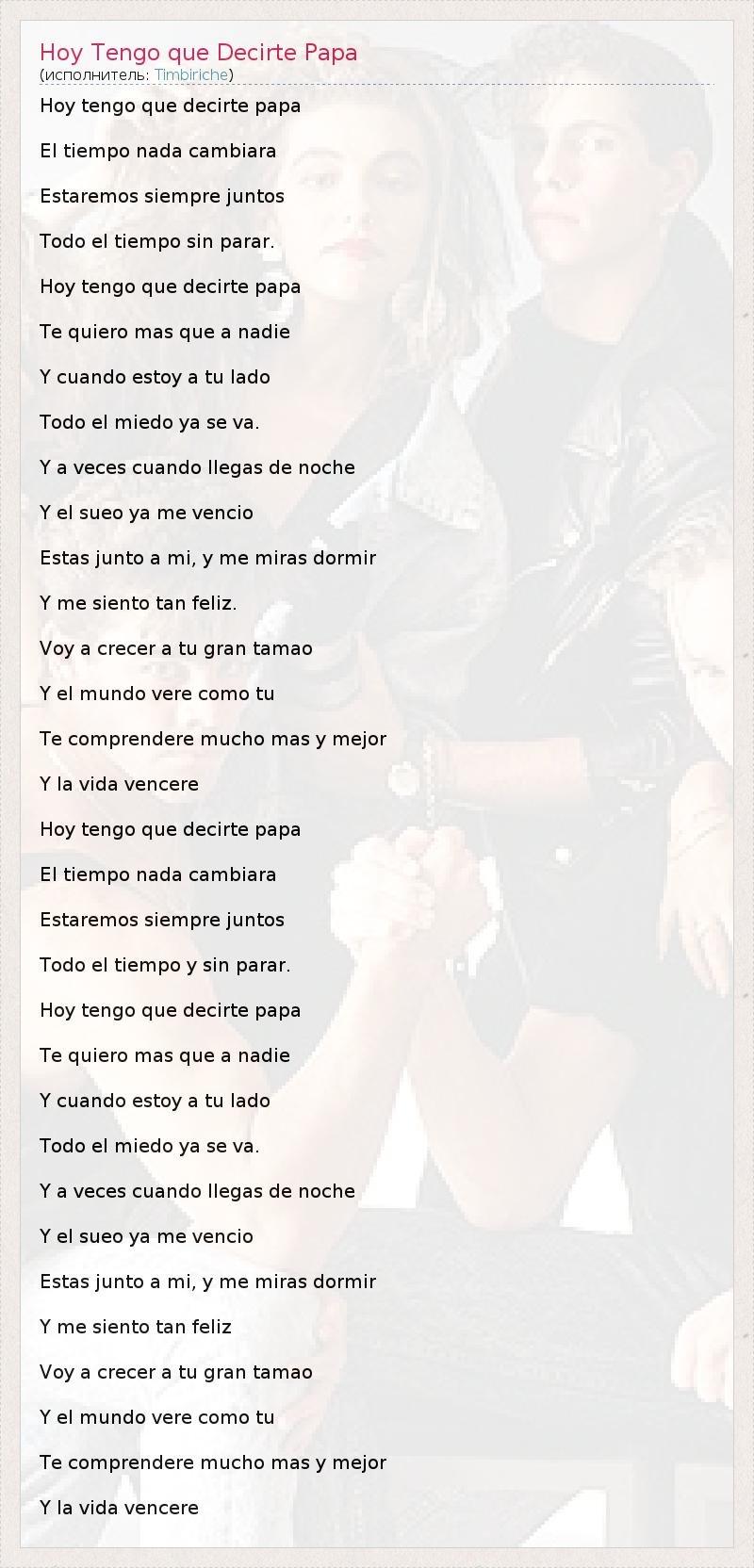 ГлавнаяИсполнителиTimbiricheHoy Tengo que Decirte Papa