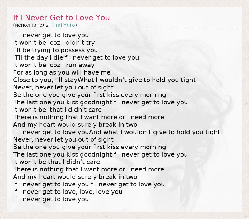 ГлавнаяИсполнителиTimi YuroIf I Never Get to Love You