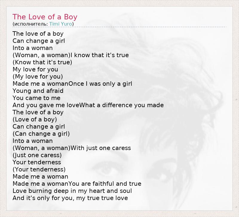 А как ты думаешь, о чем песня "The Love of a Boy" ?