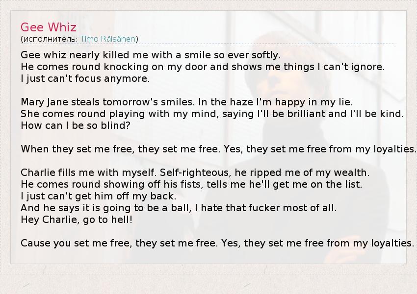 А как ты думаешь, о чем песня "Gee Whiz" ?