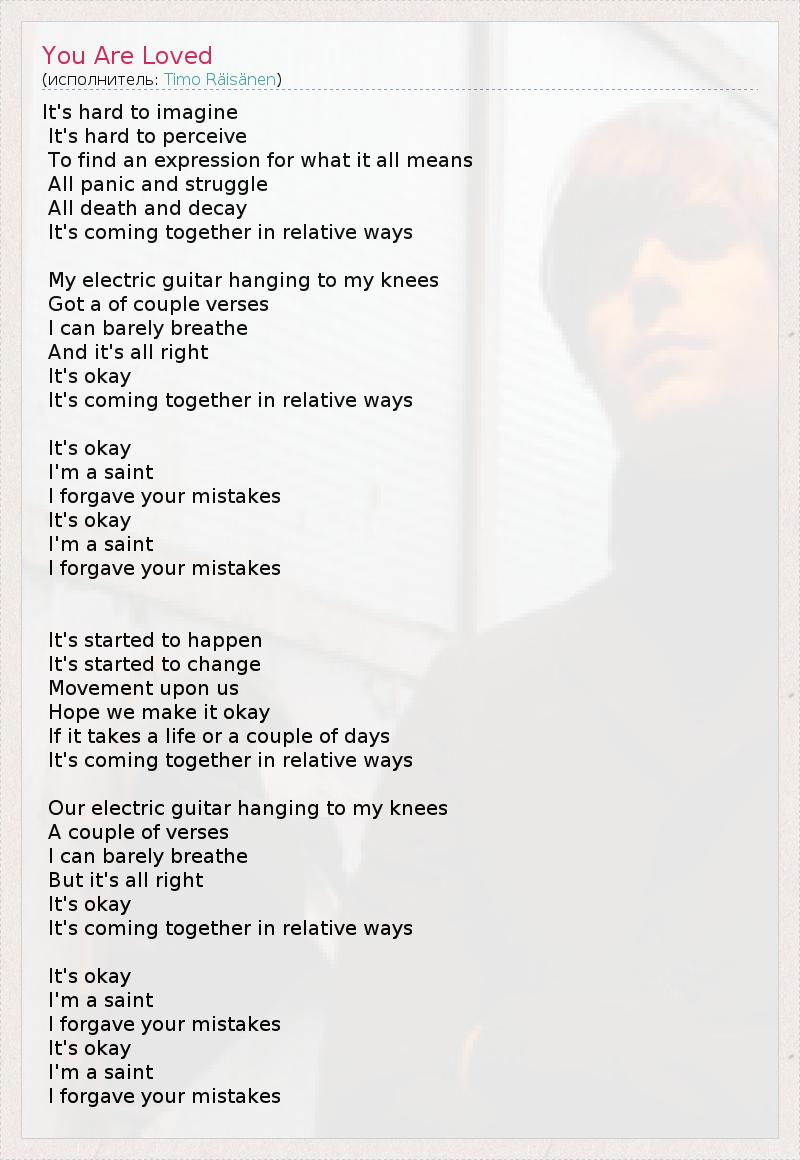 А как ты думаешь, о чем песня "You Are Loved" ?