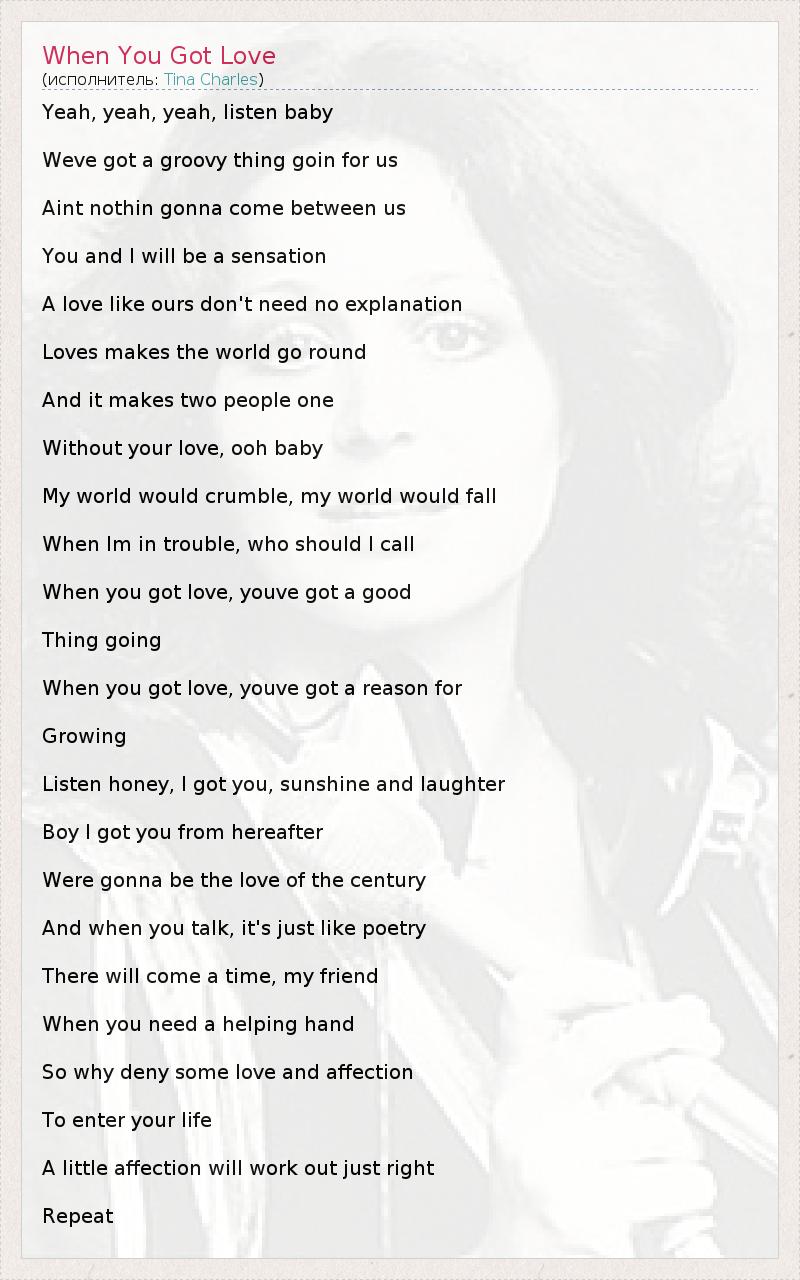 А как ты думаешь, о чем песня "When You Got Love" ?