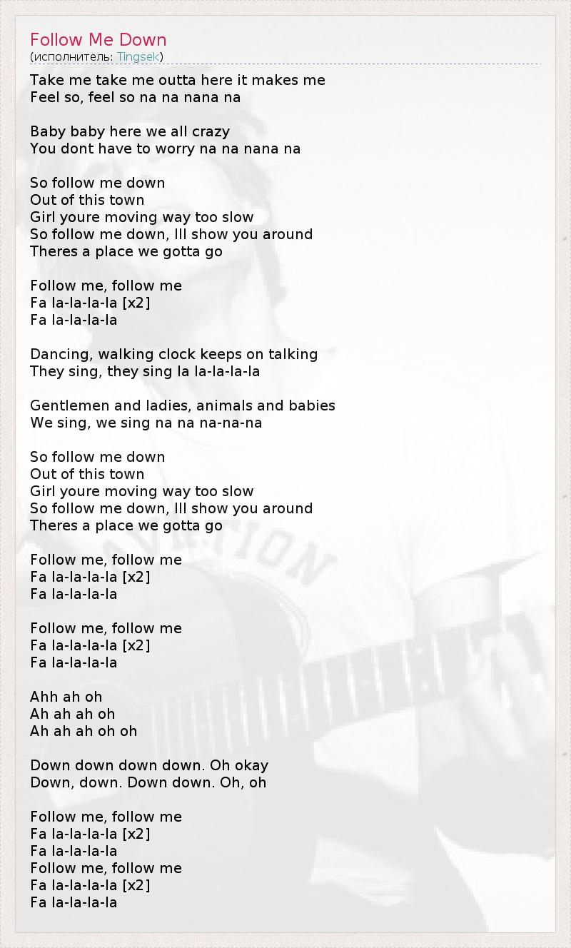 А как ты думаешь, о чем песня "Follow Me Down" ?