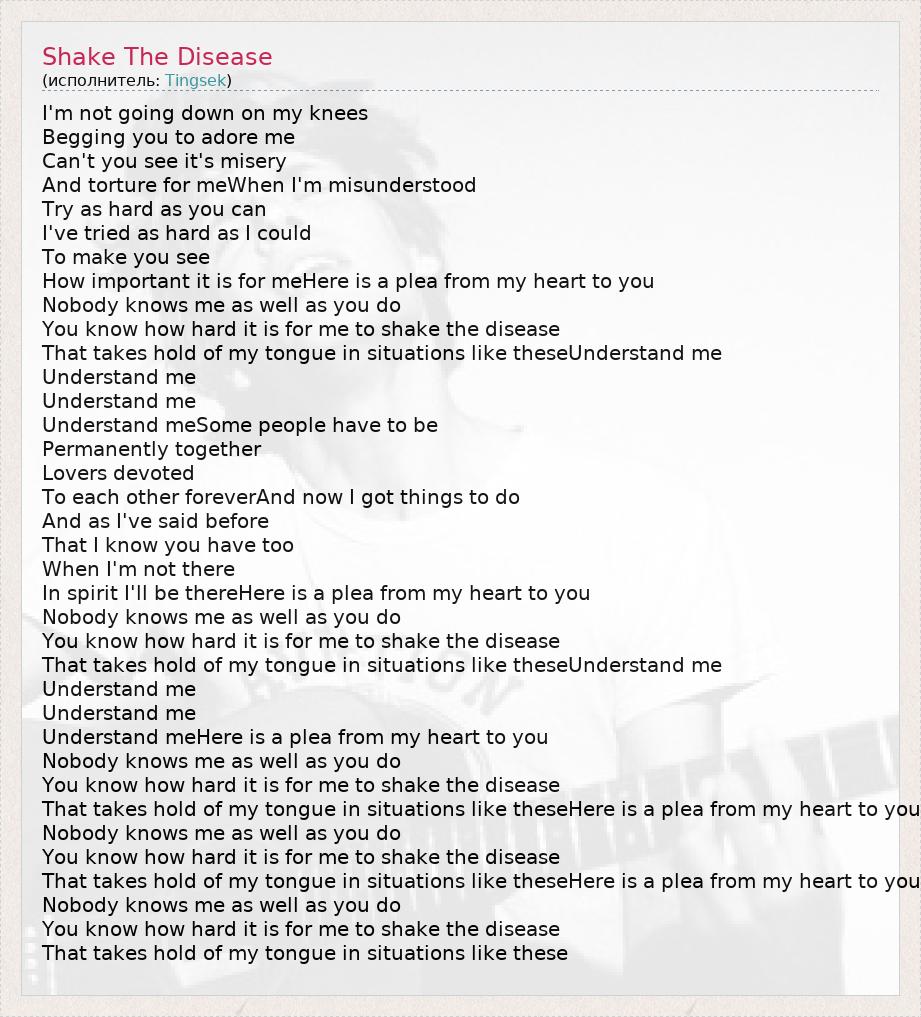 А как ты думаешь, о чем песня "Shake The Disease" ?