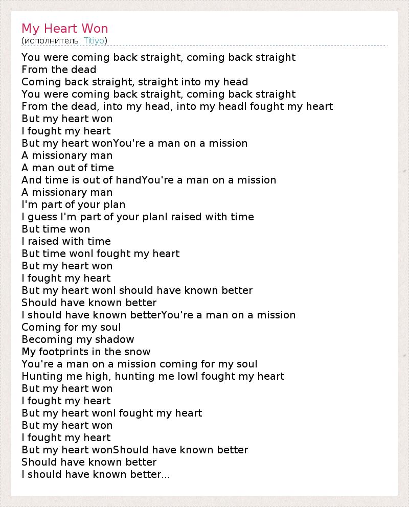 А как ты думаешь, о чем песня "My Heart Won" ?