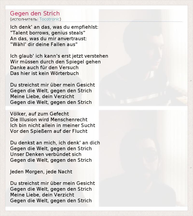 А как ты думаешь, о чем песня "Gegen den Strich" ?
