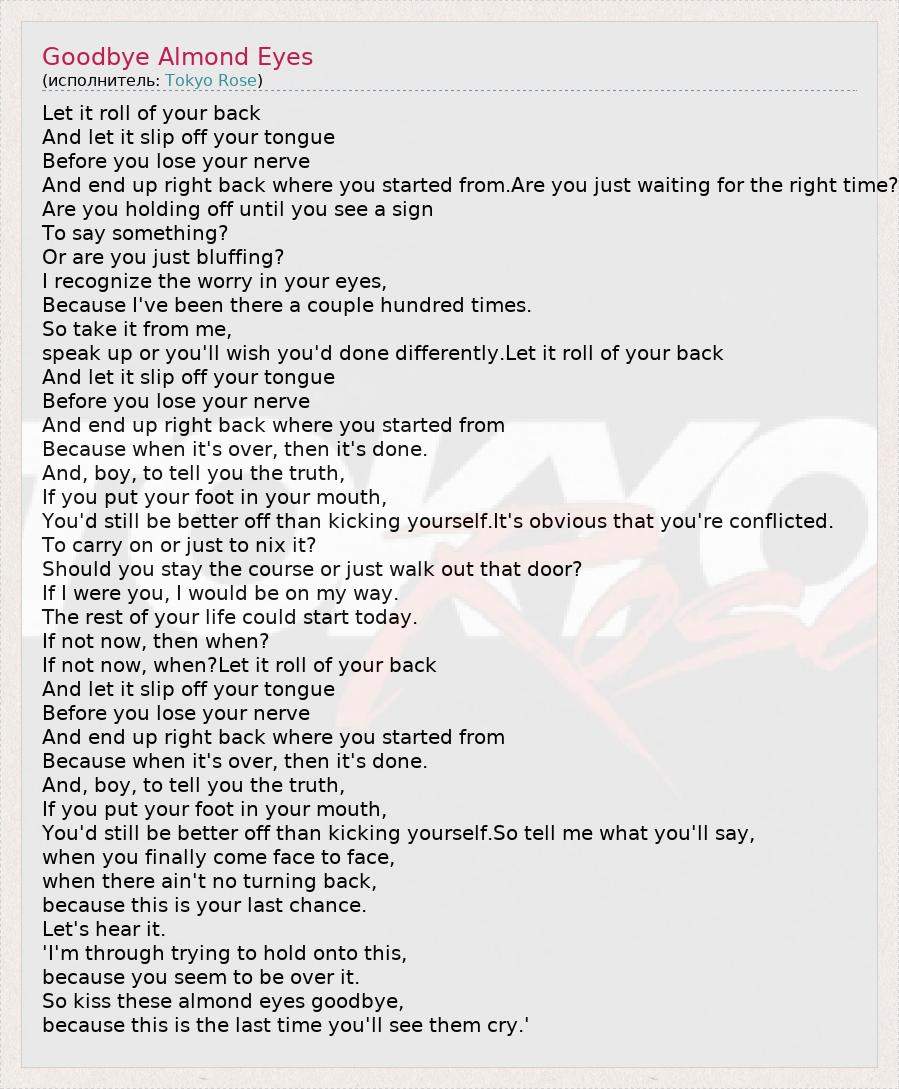 А как ты думаешь, о чем песня "Goodbye Almond Eyes" ?
