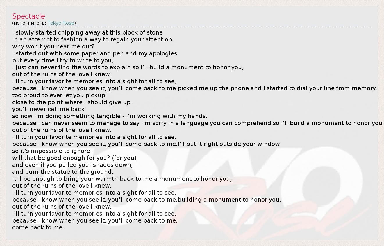 I just can never find the words to explain.so I'll build a monument to honor you,