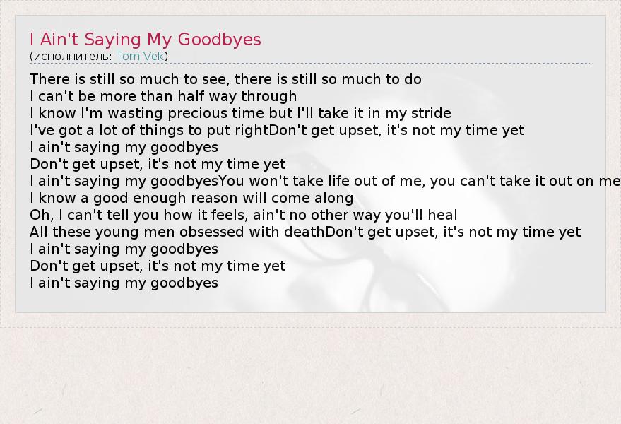 ГлавнаяИсполнителиTom VekI Ain't Saying My Goodbyes