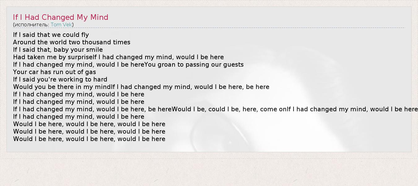 ГлавнаяИсполнителиTom VekIf I Had Changed My Mind