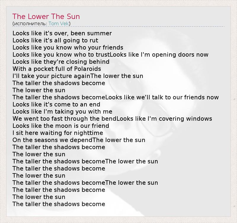 А как ты думаешь, о чем песня "The Lower The Sun" ?