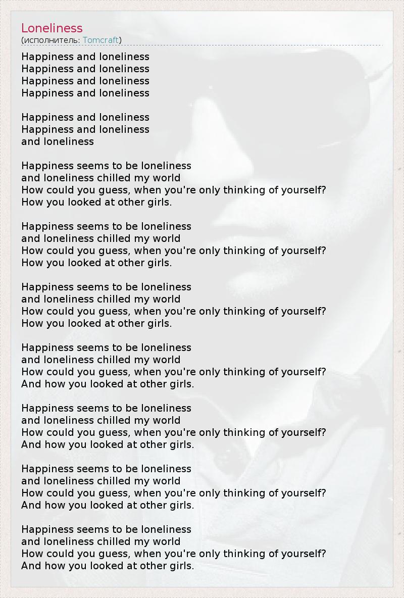 А как ты думаешь, о чем песня "Loneliness" ?