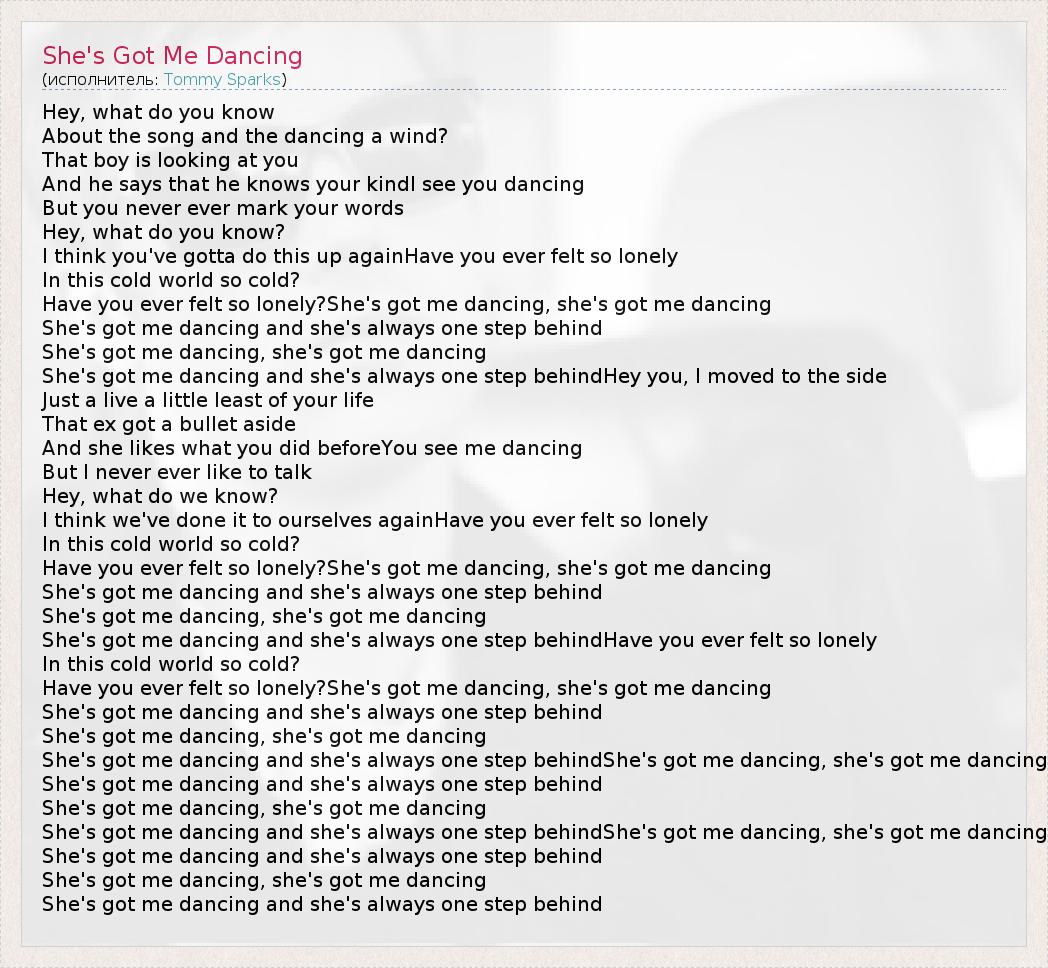 А как ты думаешь, о чем песня "She's Got Me Dancing" ?