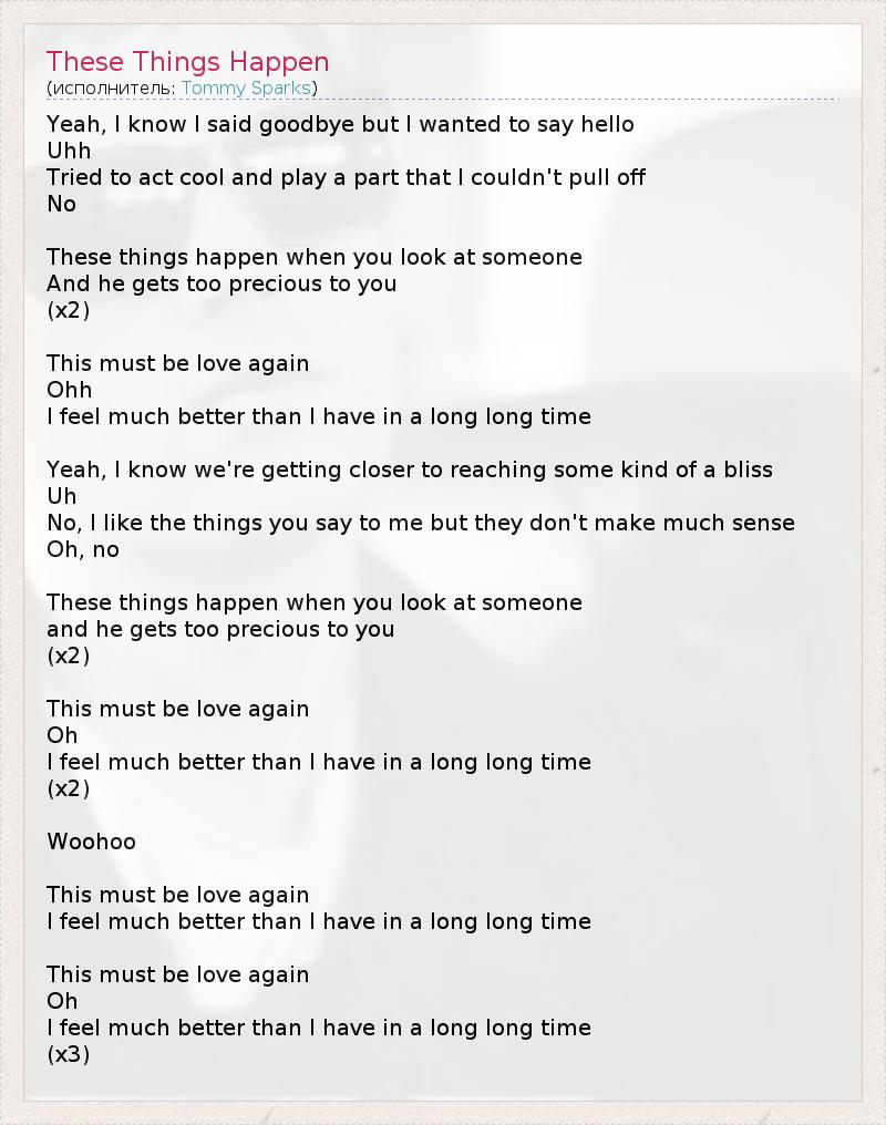 А как ты думаешь, о чем песня "These Things Happen" ?