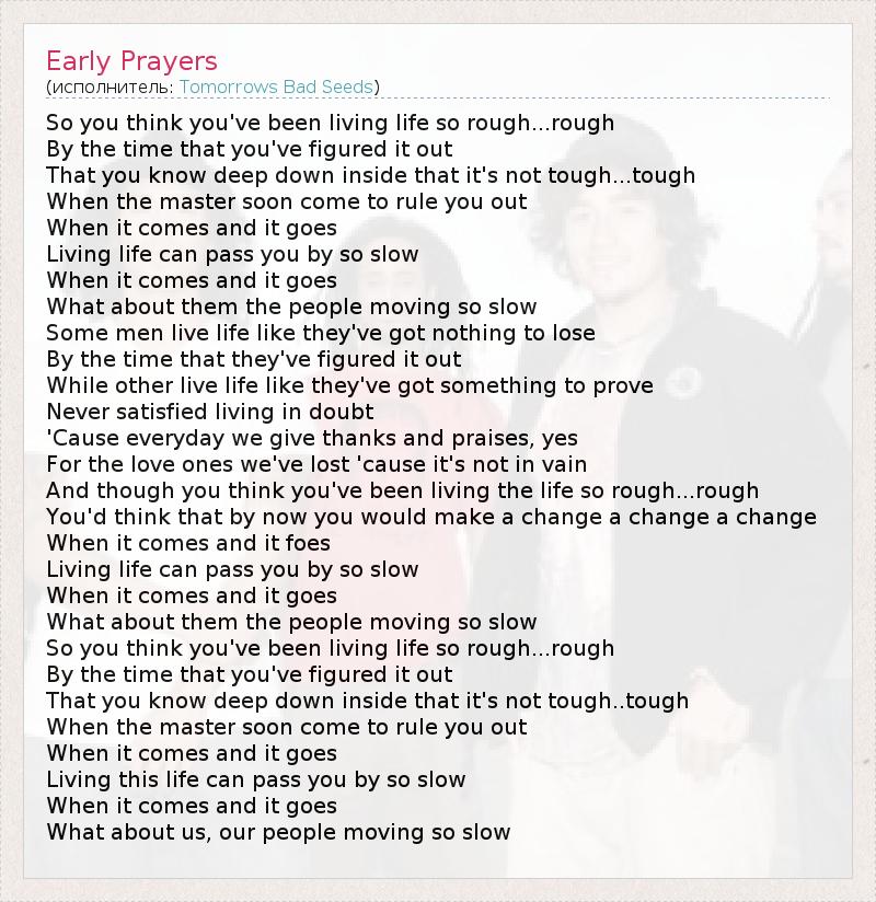 А как ты думаешь, о чем песня "Early Prayers" ?