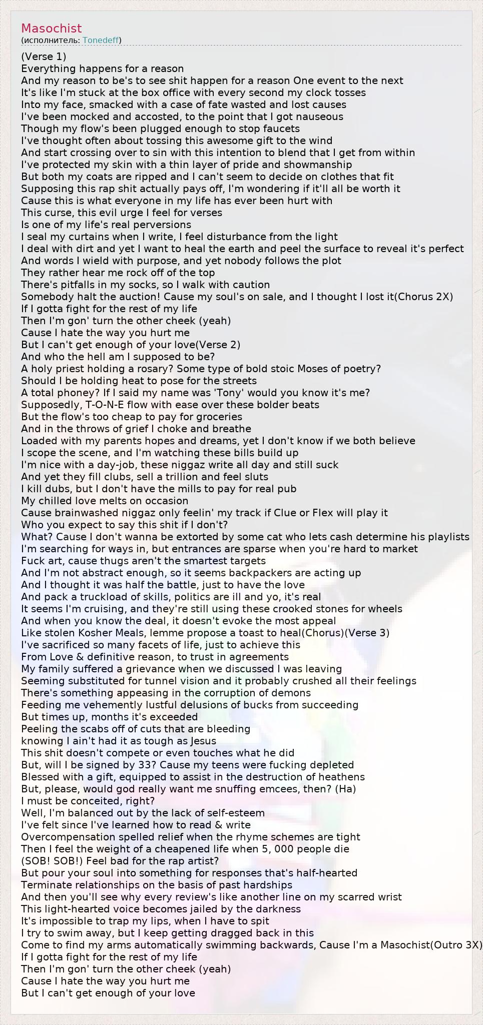 А как ты думаешь, о чем песня "Masochist" ?